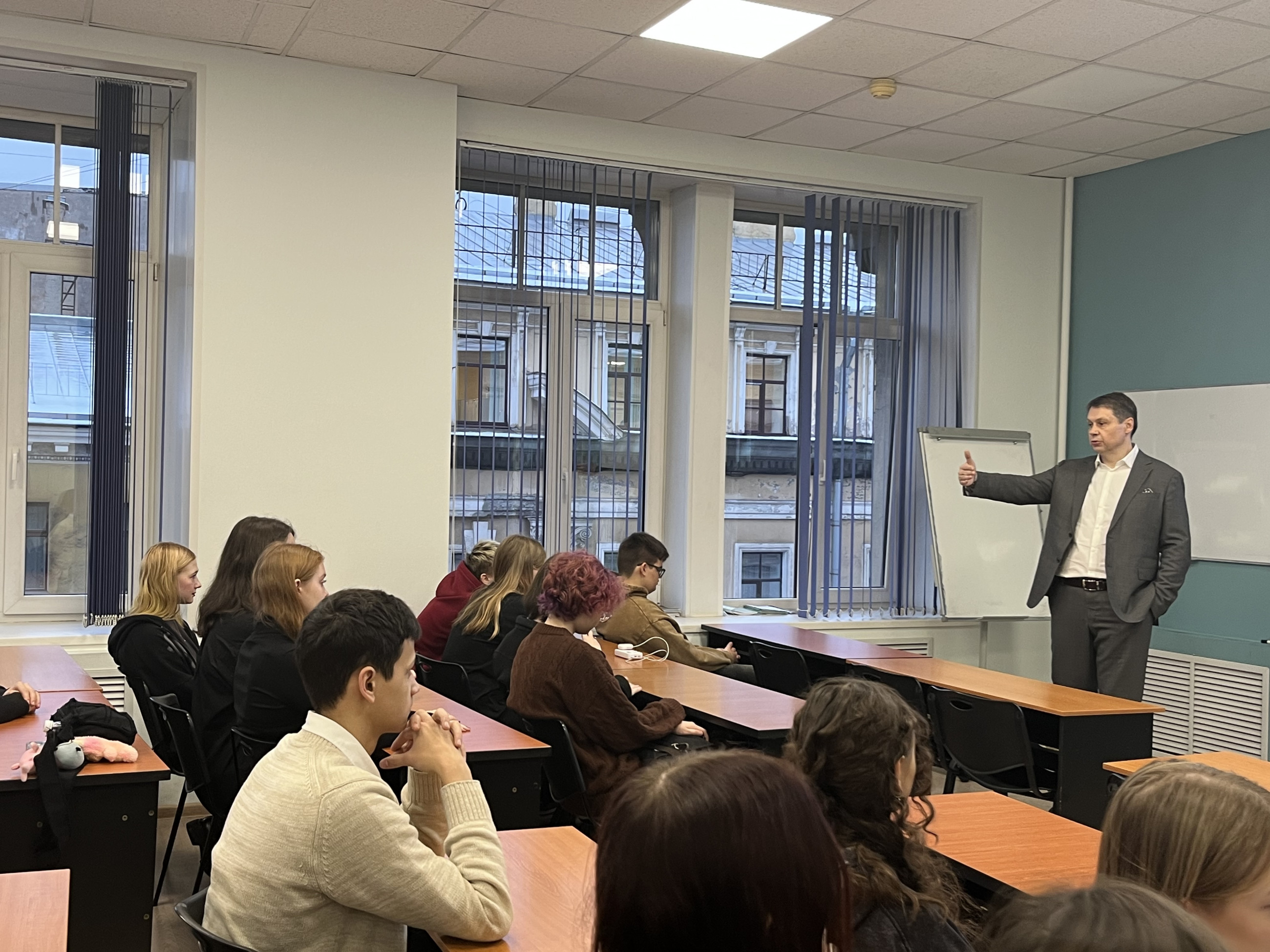 Студенты групп №541, №550, №555 и №556 прослушали лекцию финансового консультанта и инвестора Андрея Александровича Рыжкова о принципах финансовой грамотности и способах накопления денег.