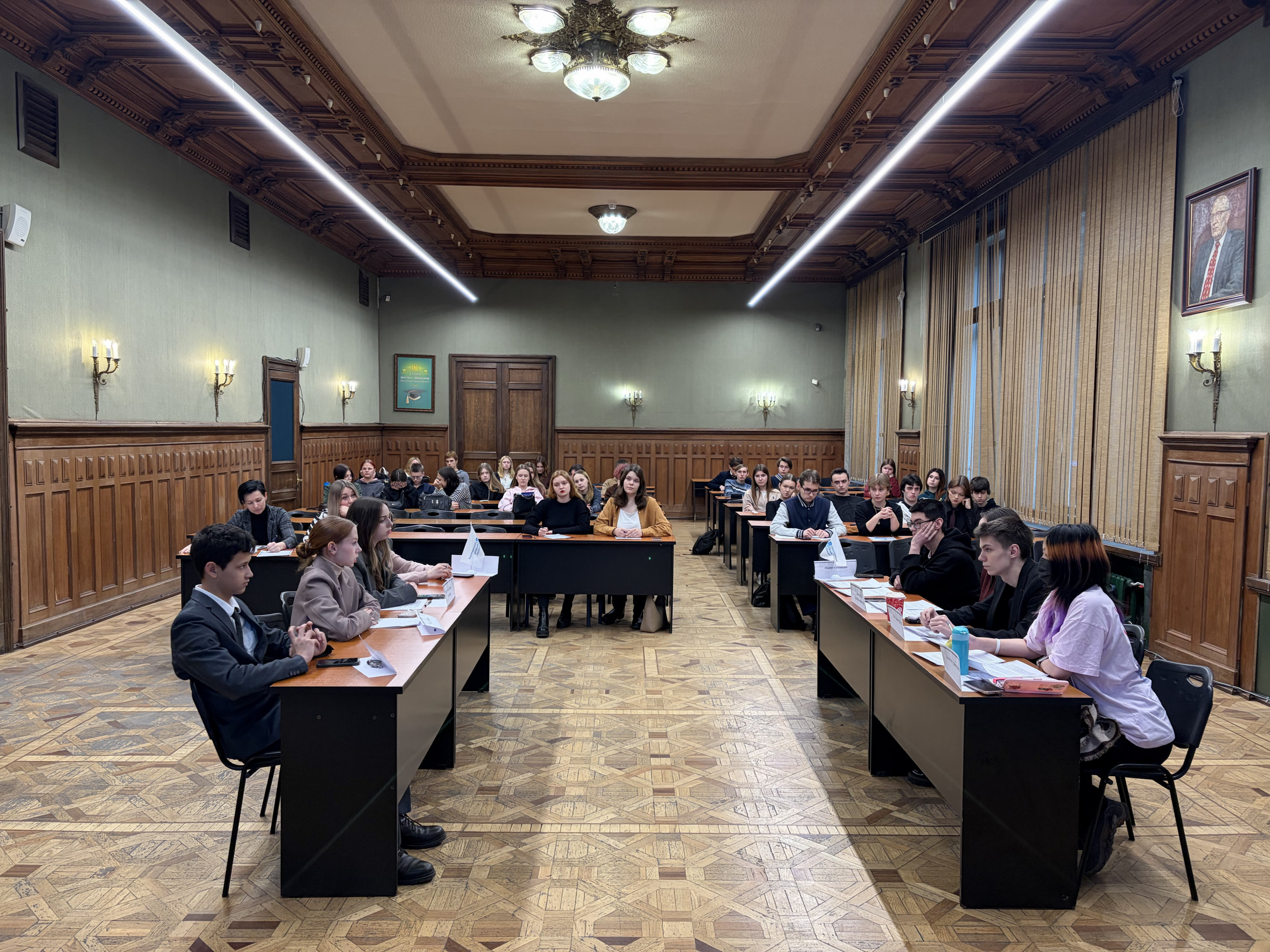 Студенты группы №540 (правительство) и №550 (оппозиция), а также аудитория, выступившая независимым жюри и наблюдателями, активно участвовали в дискуссиях.