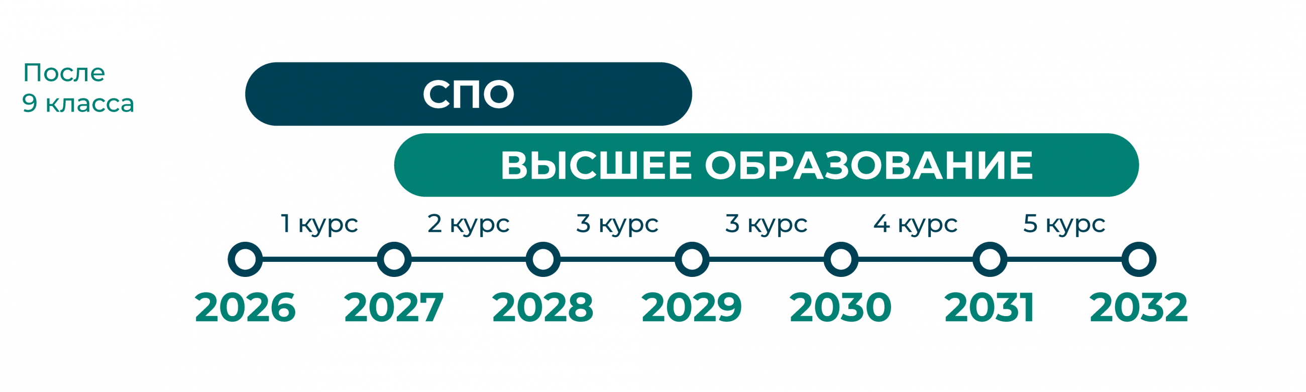 1. Схема получения среднего и высшего образования на программе параллельного обучения после 9 класса. Получение диплома высшего образования – июнь 2031 года