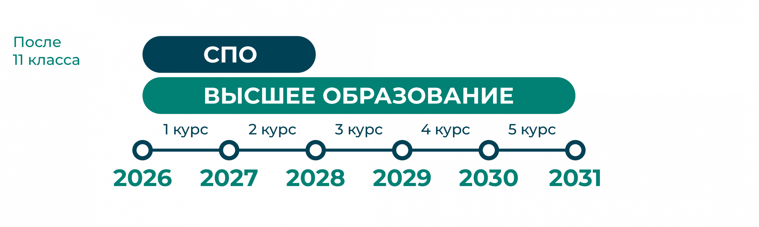 2. Схема получения среднего и высшего образования на программе параллельного обучения после 11 класса. Получение диплома высшего образования – июнь 2030 года
